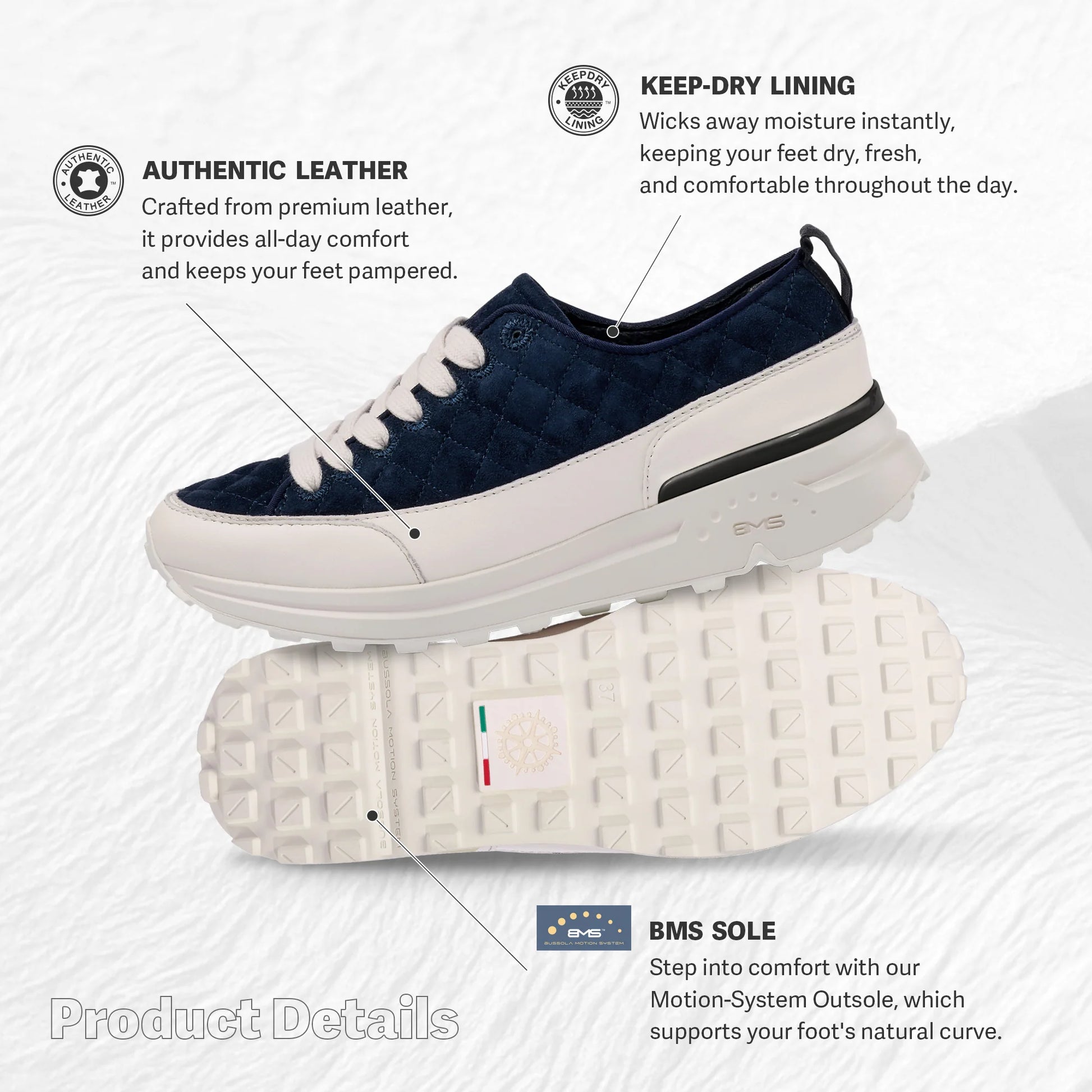 Effortlessly elevated — BMS Quilted Suede Platform Sneakers keep up with your day in comfort and quiet confidence. Whether you're out for a long afternoon walk or just staying busy on your feet, these sneakers give you soft support, a smooth stride, and a touch of lift that feels good from the ground up.