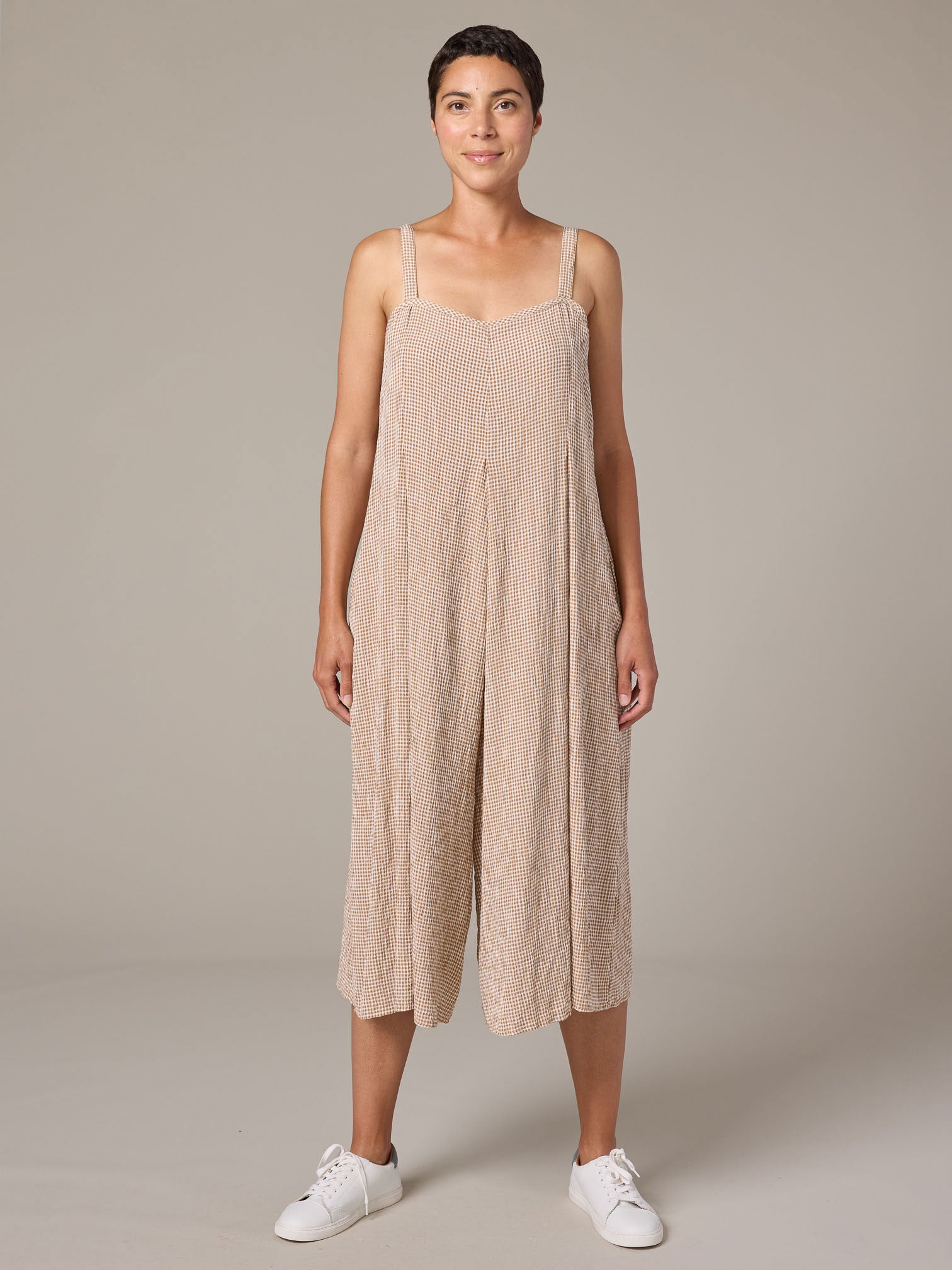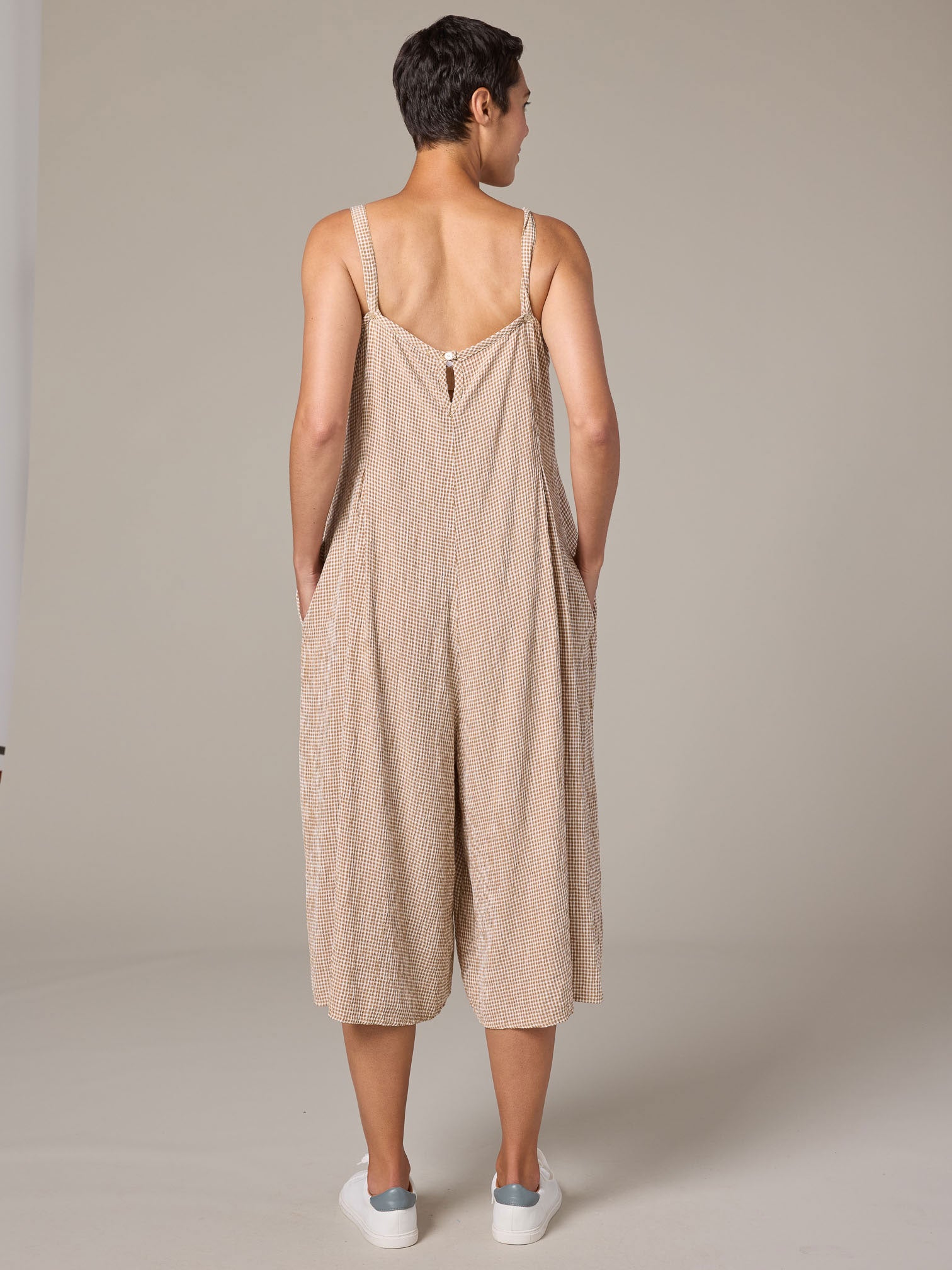 CUT LOOSE CROPPED JUMPSUIT - TAN, TEAL