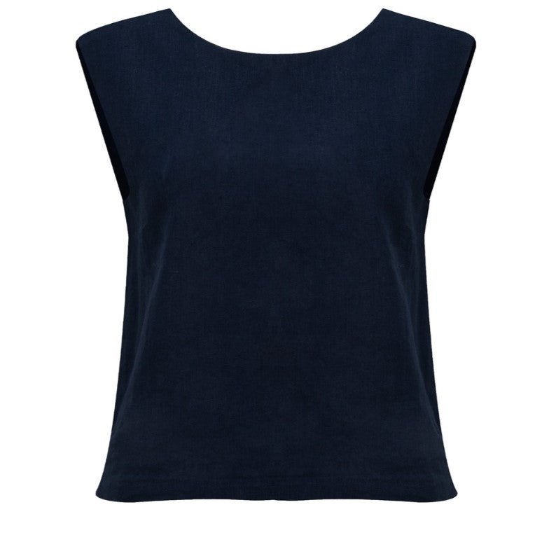 The Its Only Natural Top from Foil is back again this season in new hues and prints. This flattering sleeveless linen piece features a boxy silhouette, a central back pleat, and a flattering opening at the back.