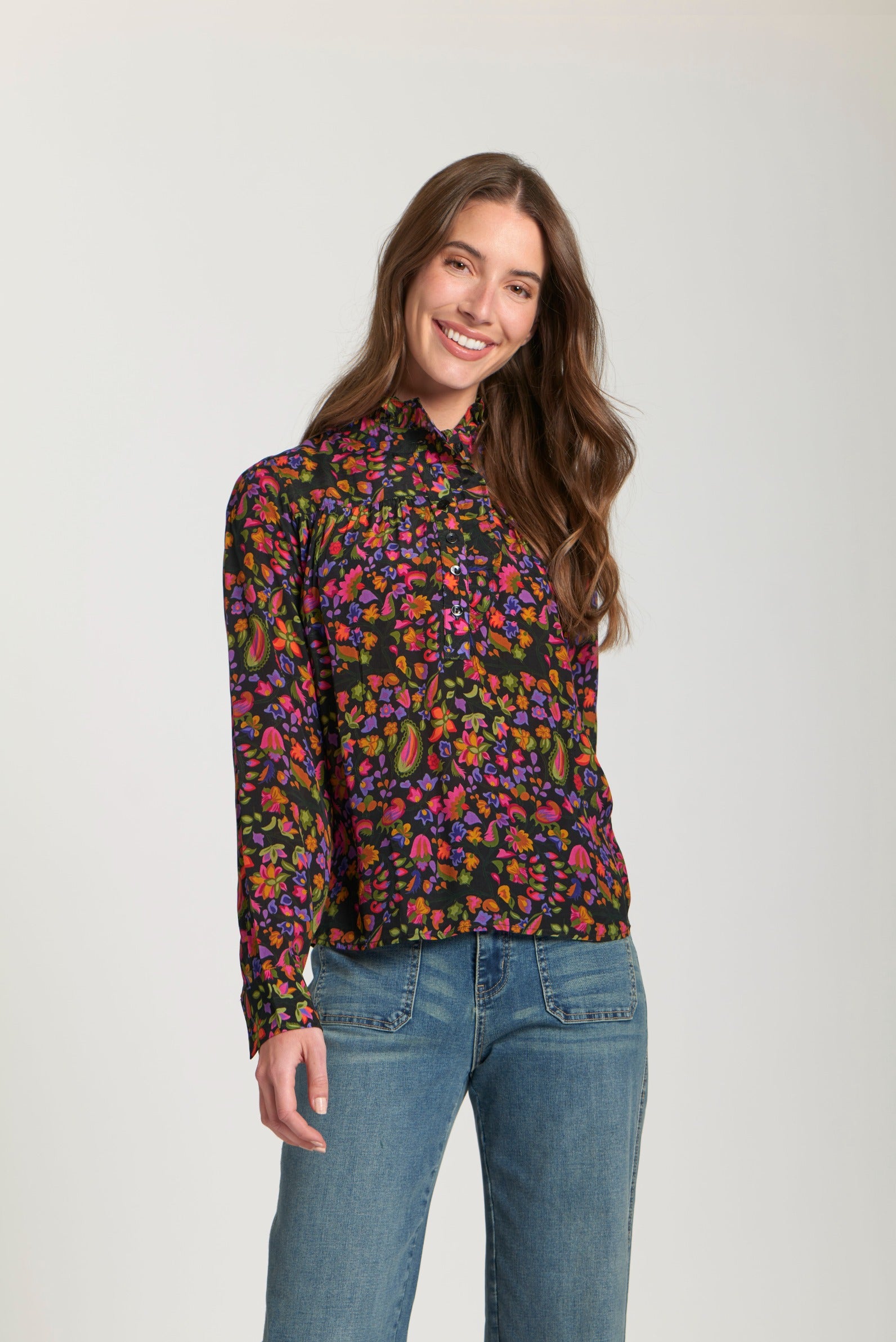 AP NY RUFF 1/2 PLACKET BLOUSE - PINK MULTI