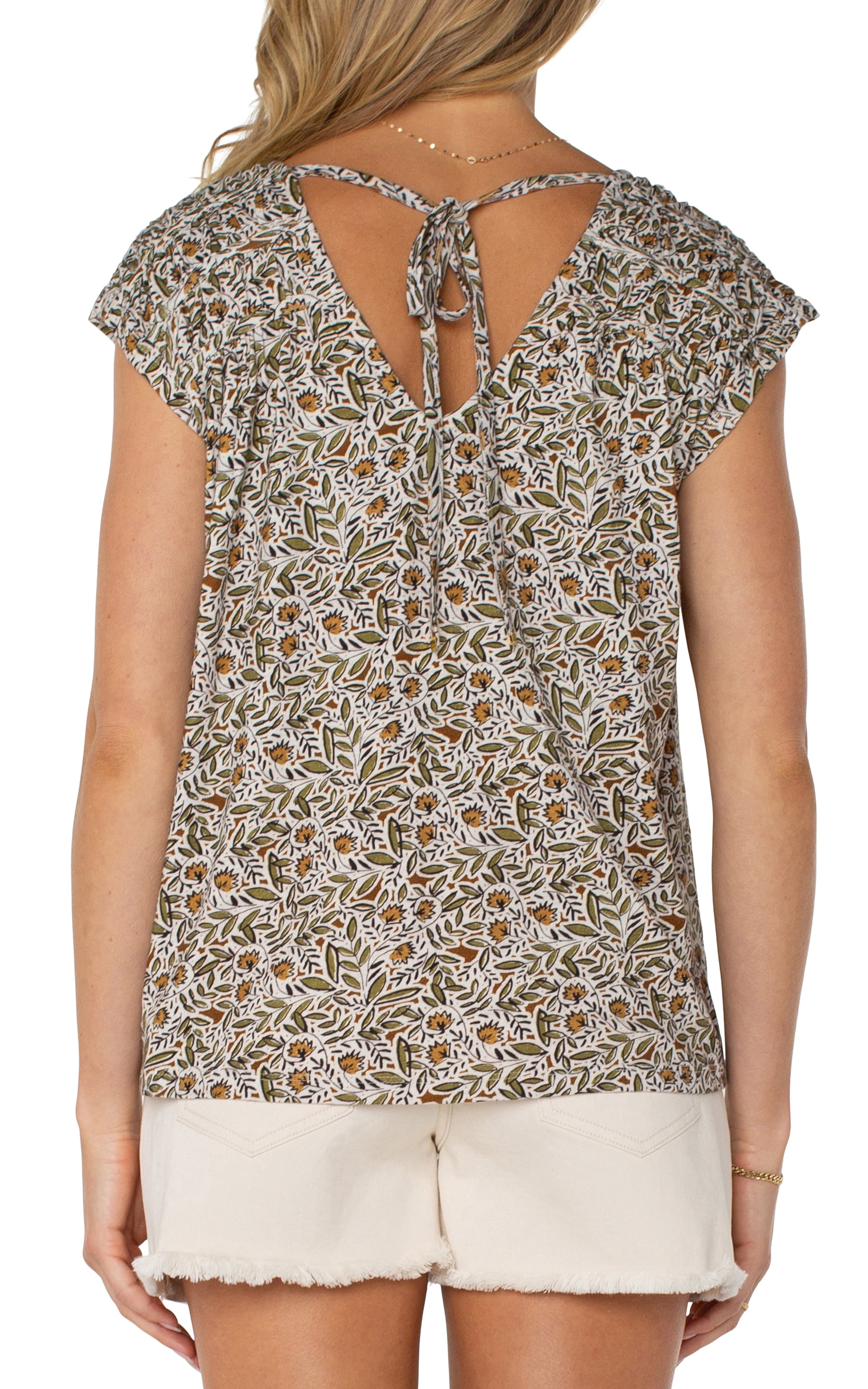 *SALE* LIVERPOOL SHORT-SLEEVE DOLMAN TIE-BACK TOP - GREEN MULTI